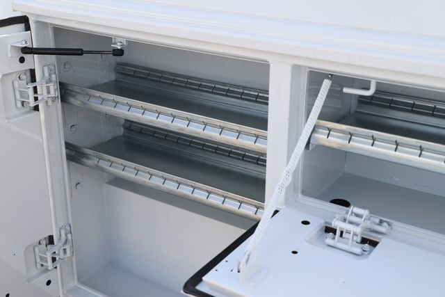 - Full Overhead Console w/Storage and 2 12V DC Power Outlets
