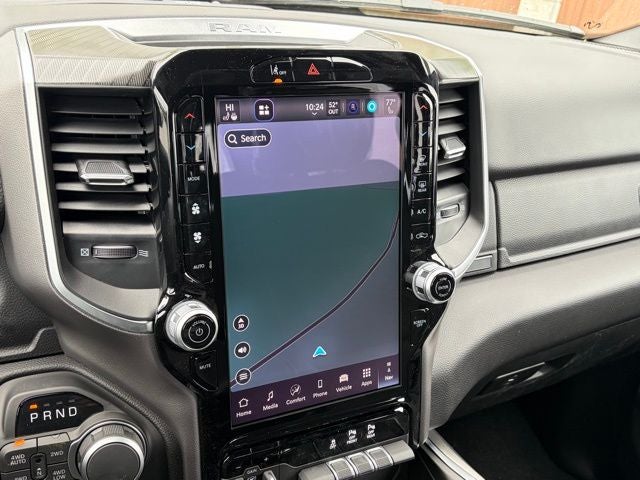 This truck is loaded with useful factory upgrades, including the Bed Utility Group with pick-up box lighting, spray-in bedliner by Mopar, exterior 115V outlet, and 4 adjustable cargo tie-down hooks. It also includes the highly desirable Multi-Function Tailgate and RamBox Cargo Management System with truck bed cargo divider for added storage and utility. Inside, the Big Horn Level 2 Equipment Group adds heated front seats, heated steering wheel, 8-way power driver seat, 2-way power lumbar, rear 60/40 folding seat, rear center armrest, rear power-sliding window, dual-zone automatic climate control, power adjustable pedals, Uconnect 5 NAV with 12-inch touchscreen, 9 amplified speakers with subwoofer, power tailgate release, 2nd-row in-floor storage bins, and a 400W inverter. Front and rear rubber floor mats plus rear under-seat storage add even more everyday usability.
