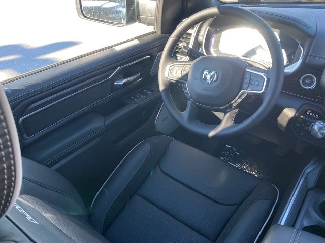 Inside, it feels more like a high-end SUV than a work truck. Leather-trimmed heated and ventilated front seats, heated rear seats, dual-zone auto climate, memory settings, and a dual-pane panoramic sunroof make commuting and road trips easy. The massive Uconnect 5 Nav 14.4-inch touchscreen, front passenger interactive display, Harman Kardon audio, and 7-inch color cluster keep maps, music, and vehicle info right where you want it. Advanced driver-assist tech works in the background to help in traffic, on long highway drives, and in tight parking lots.
